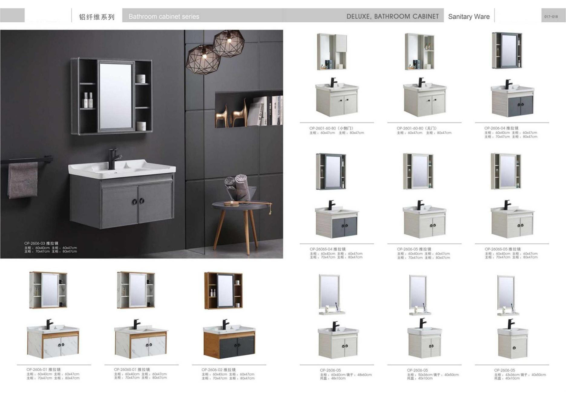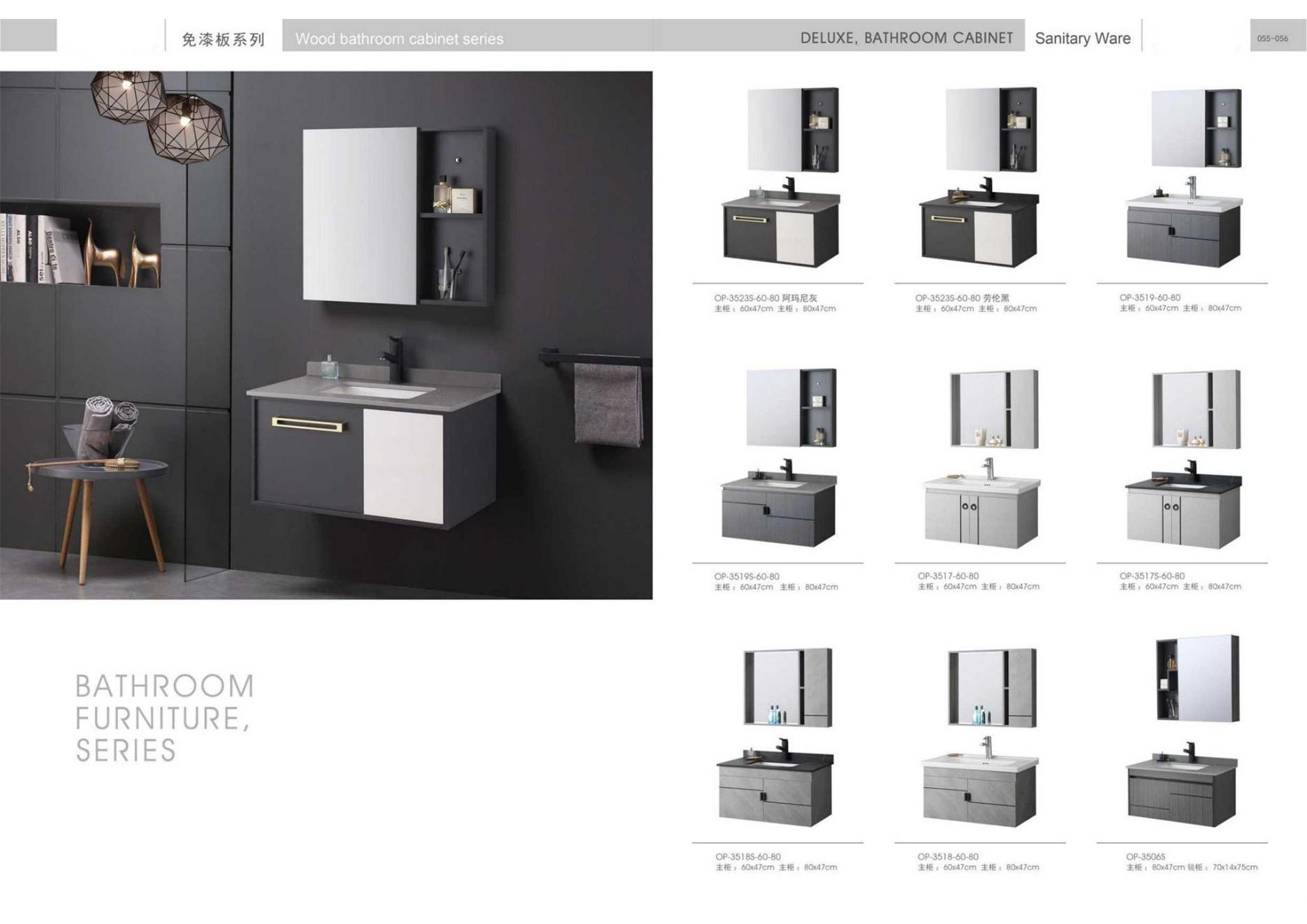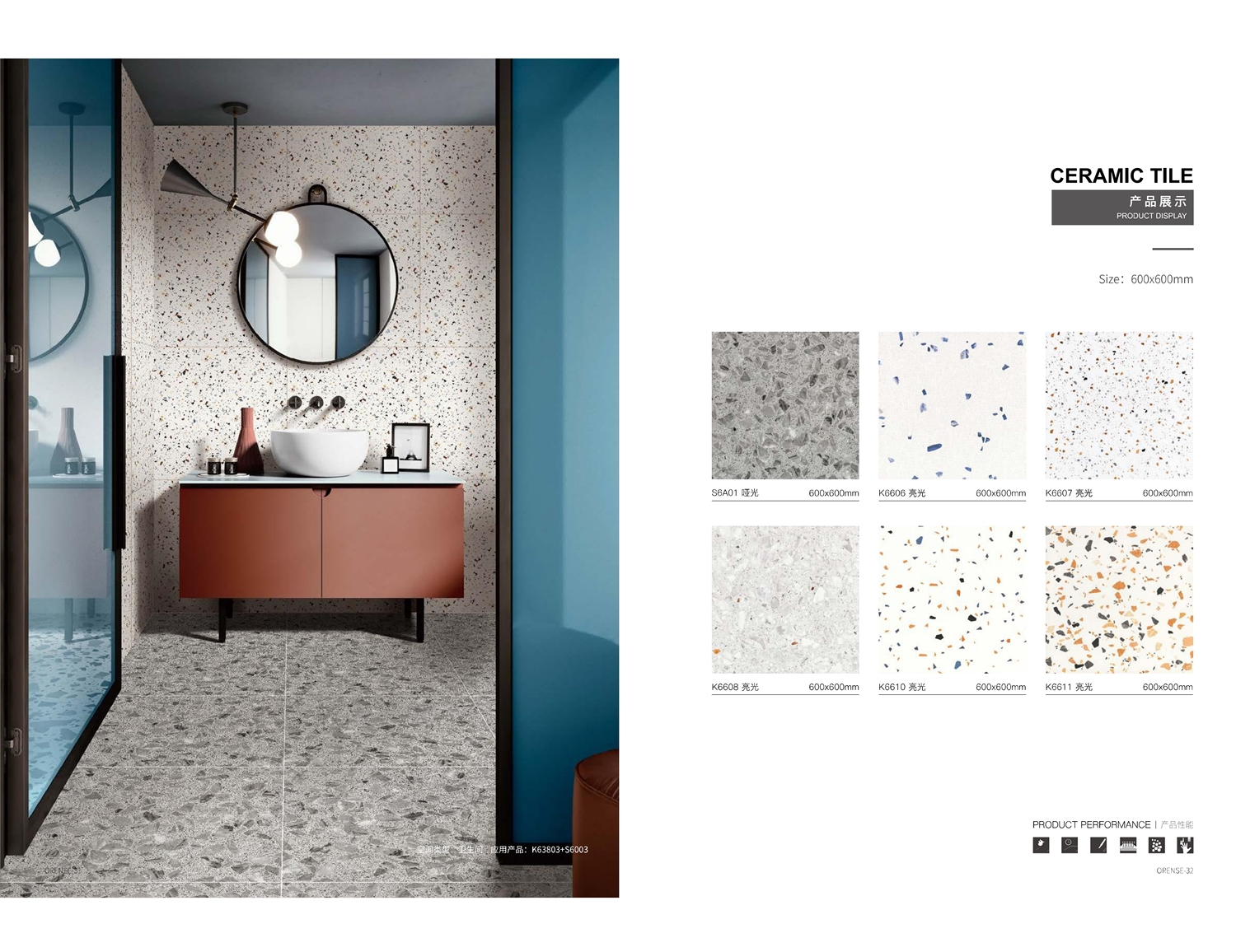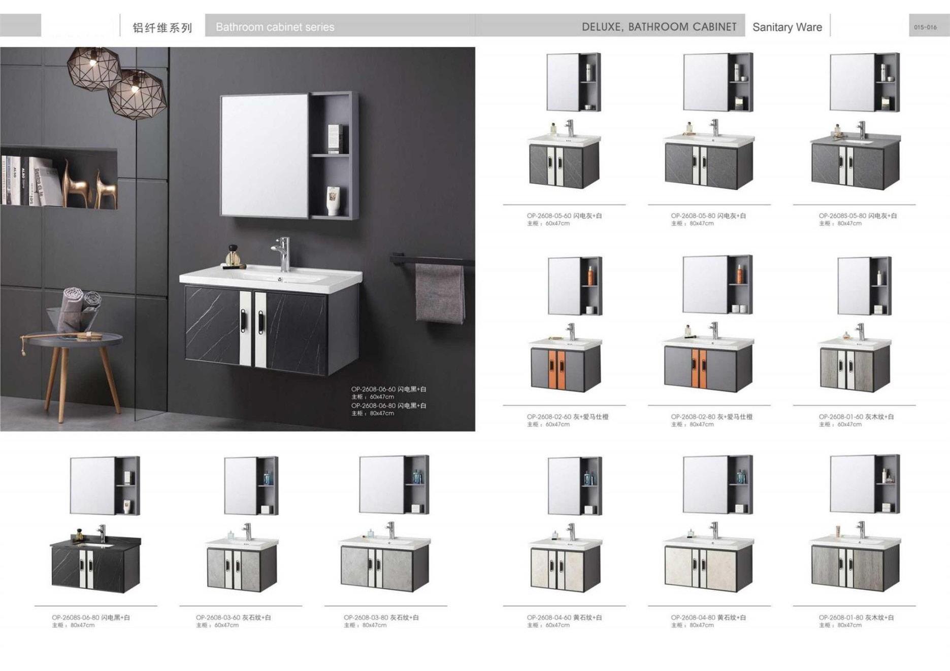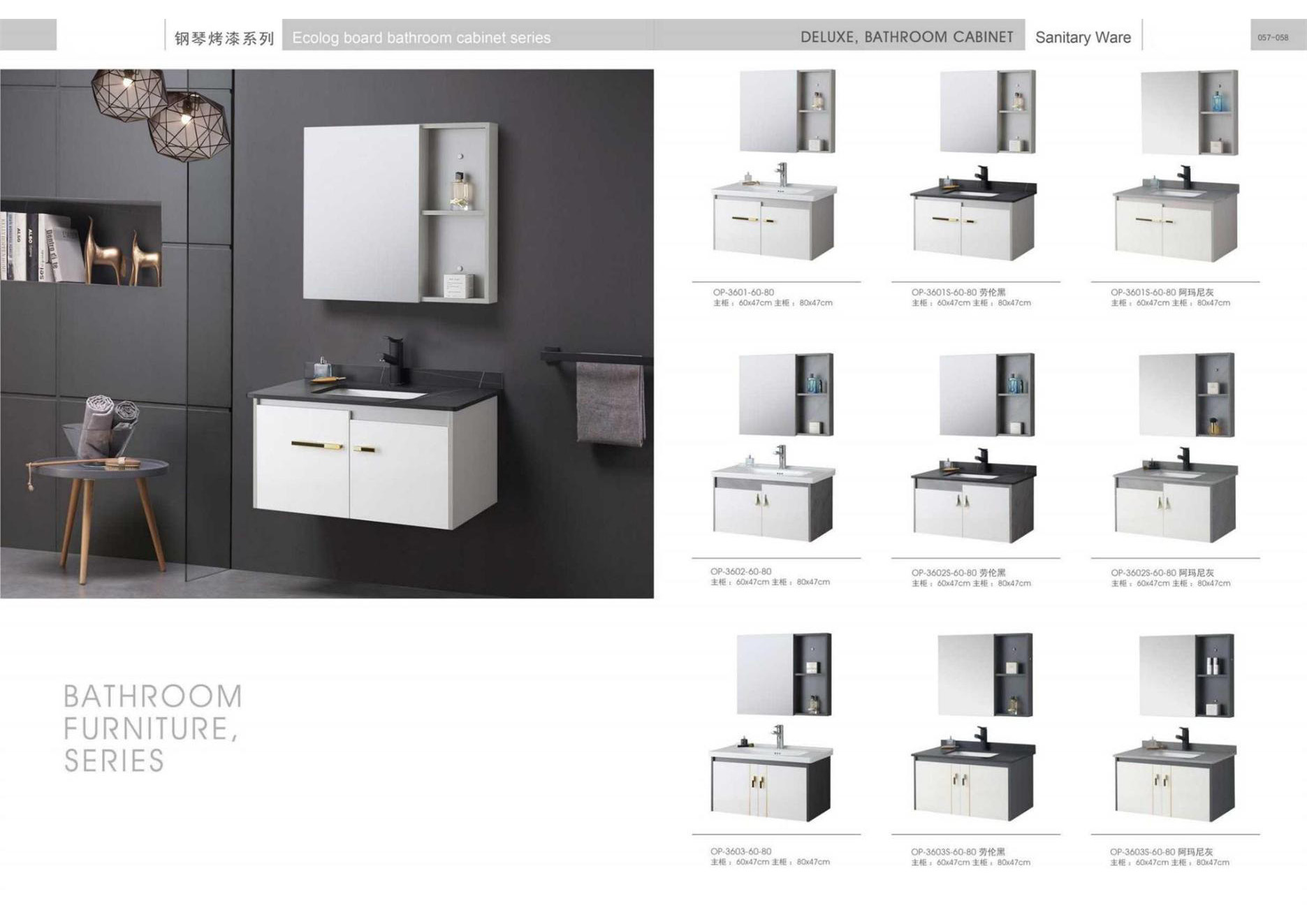 Ceramic tiles, sanitary wares, bathroom cabinets, shower room, hardware and water fittings, etc.