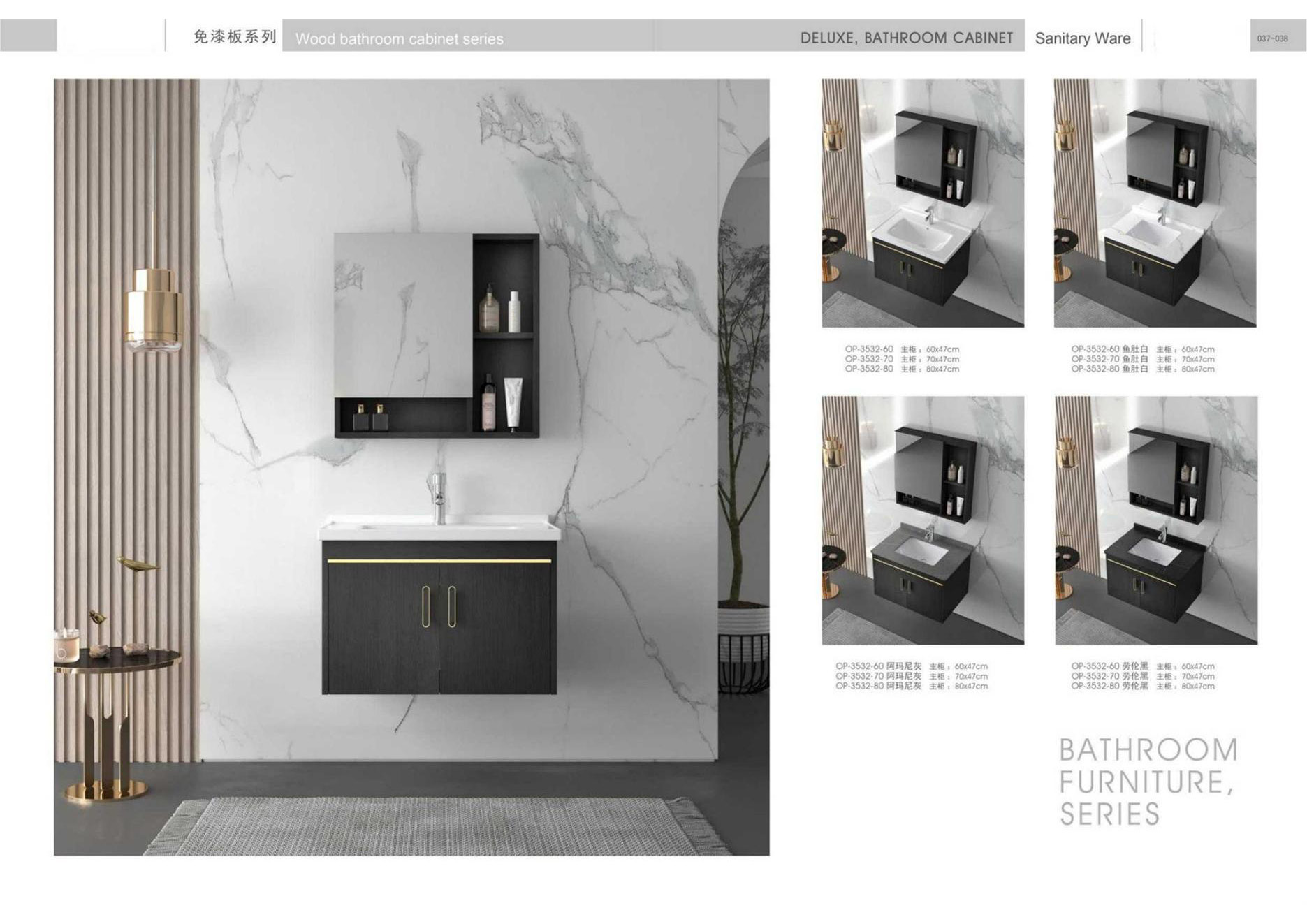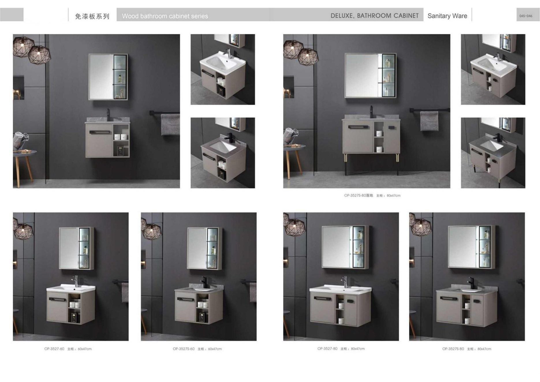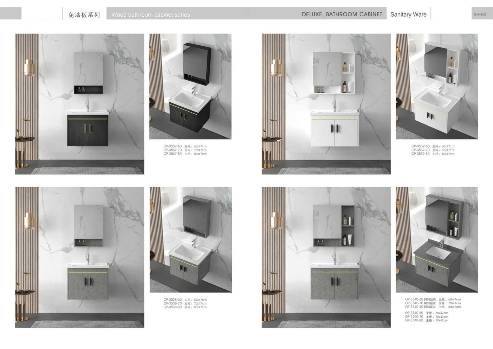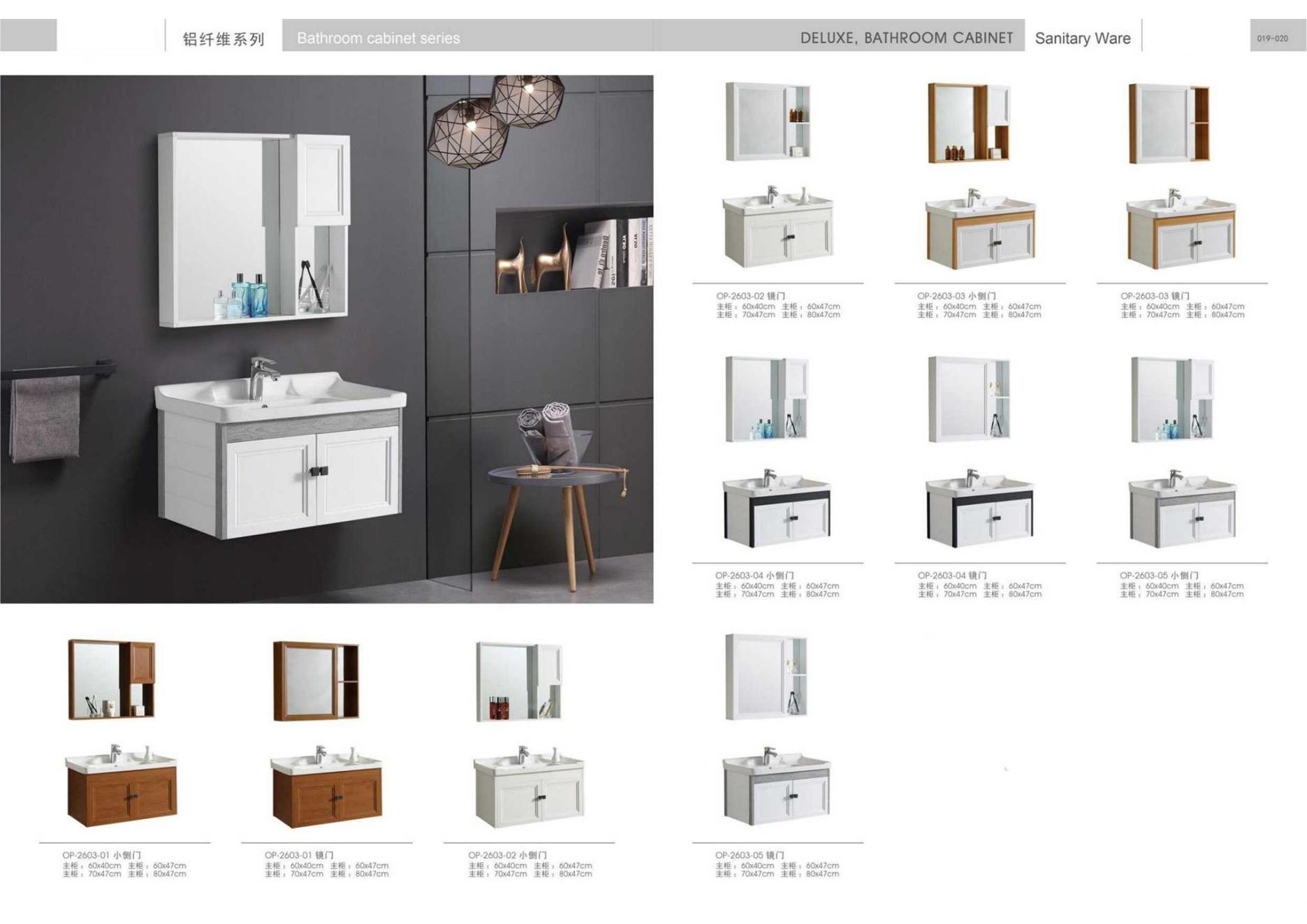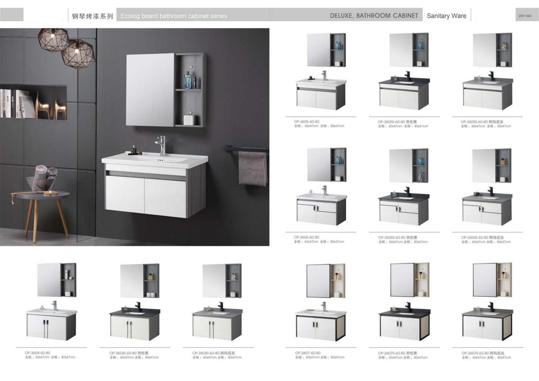 Ceramic tiles, sanitary wares, bathroom cabinets, shower room, hardware and water fittings, etc.