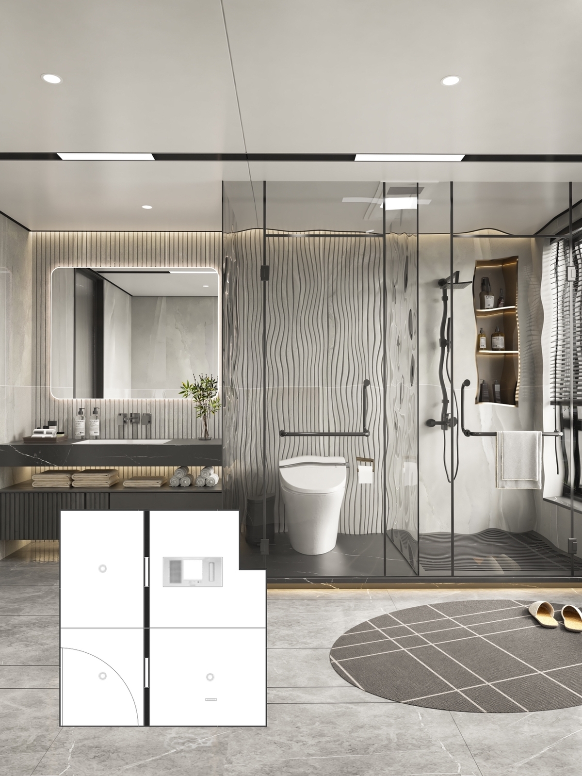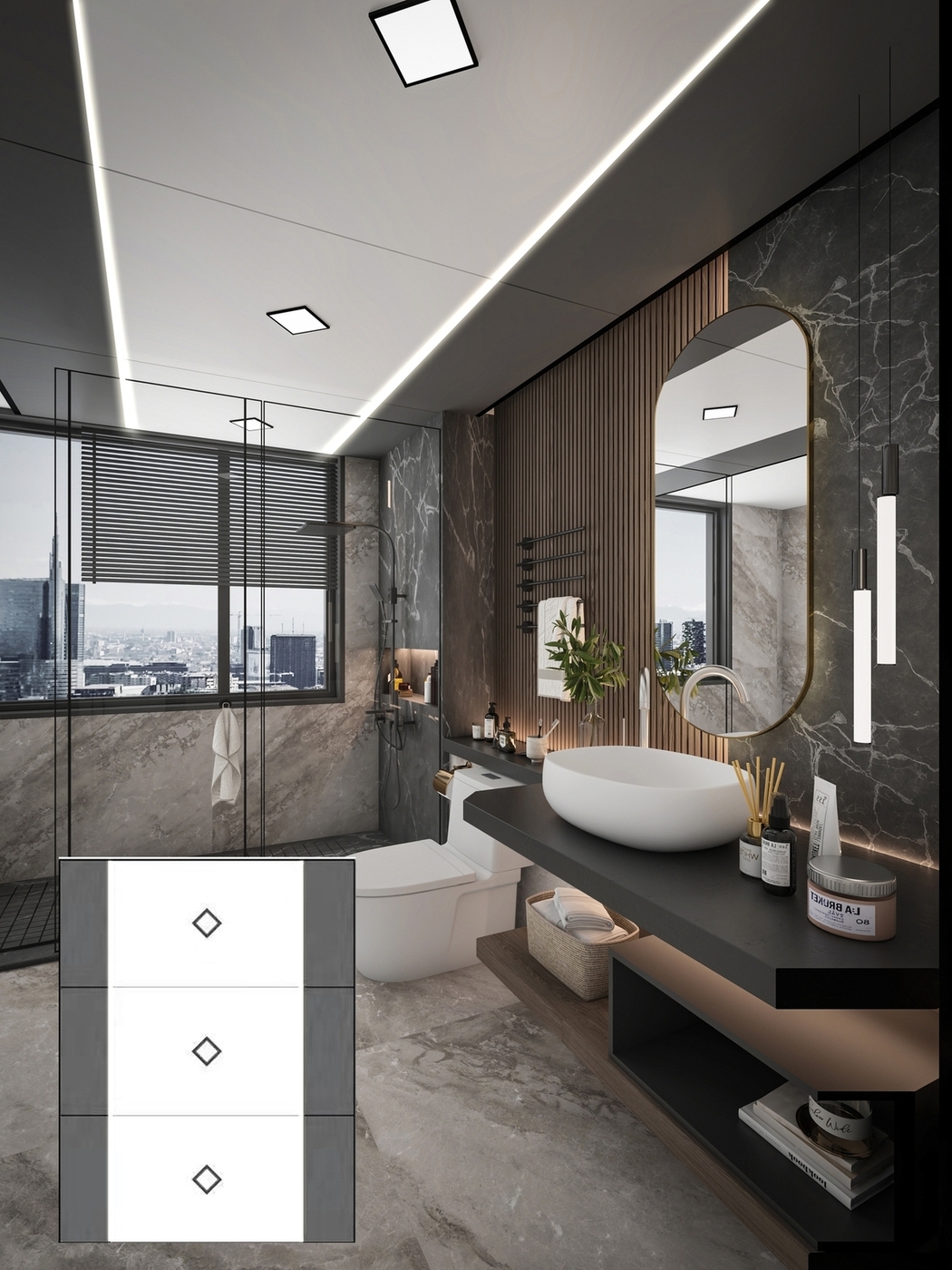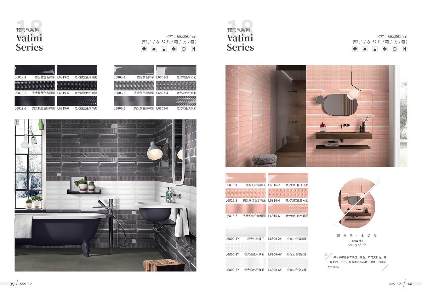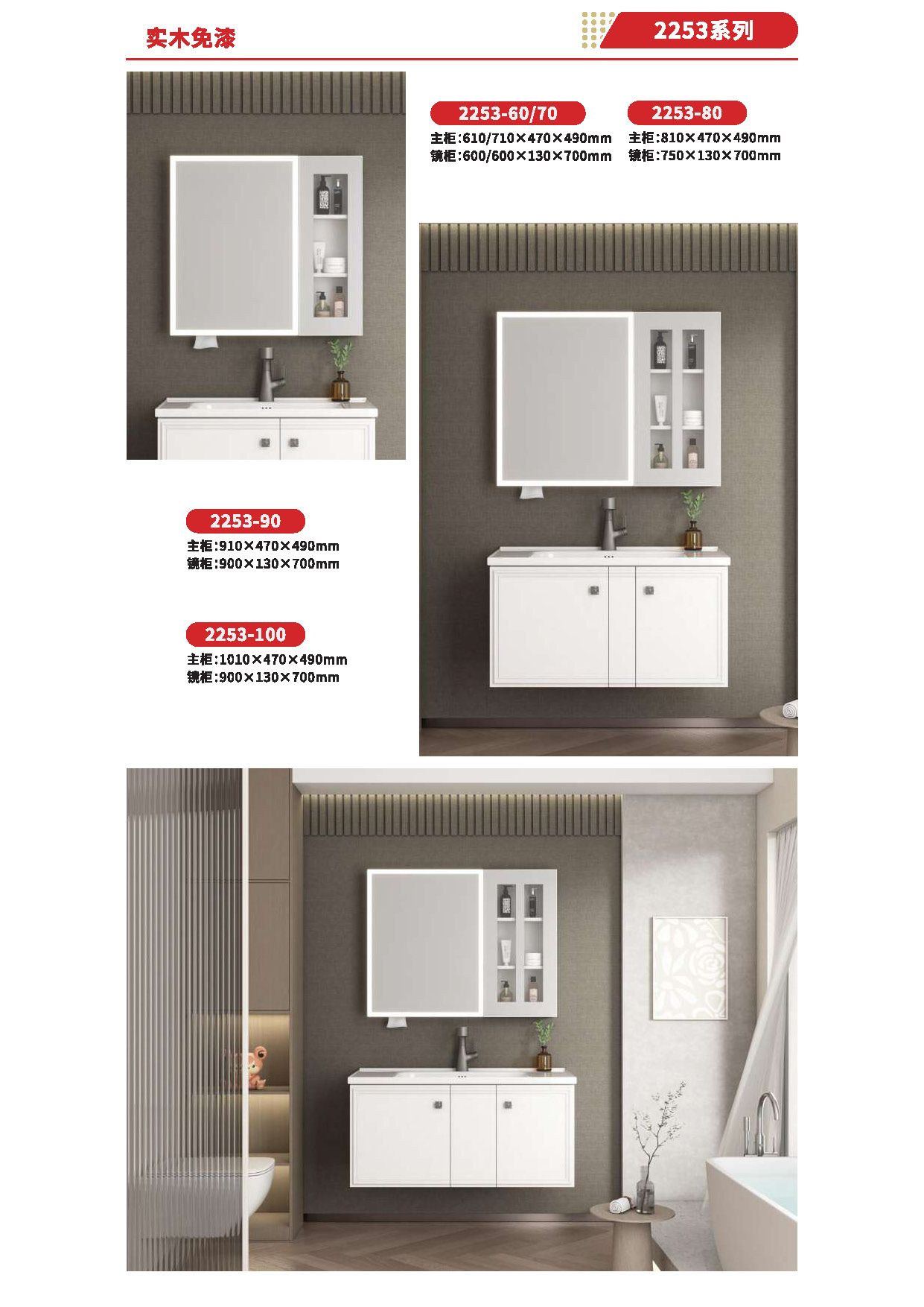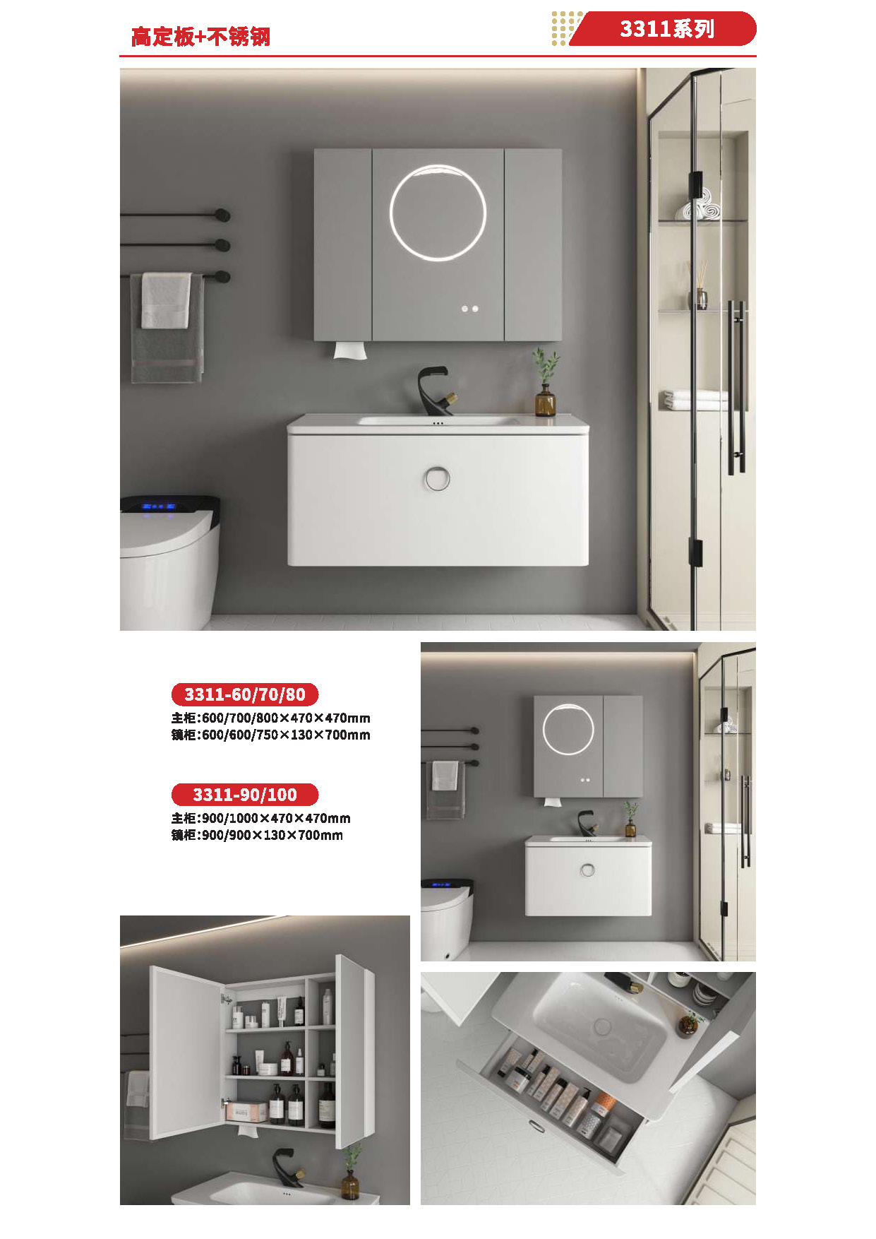 Ceramic tiles, sanitary wares, bathroom cabinets, shower room, hardware and water fittings, etc.